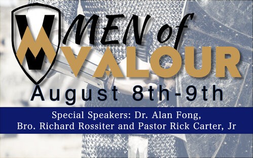 You're invited to register here for the 2025 Men of Valour Conference, as well as the exciting Golf Tournament, the Bowling Extravaganza or the Skeet Shooting Competition. Don't miss out! Make sure to secure your spot for the Conference before August 1st to take advantage of the current price of $40. The cost goes up to $50 after the 1st. Equally as important, if you are planning to golf, bowl or skeet shooting, please register by August 1st.